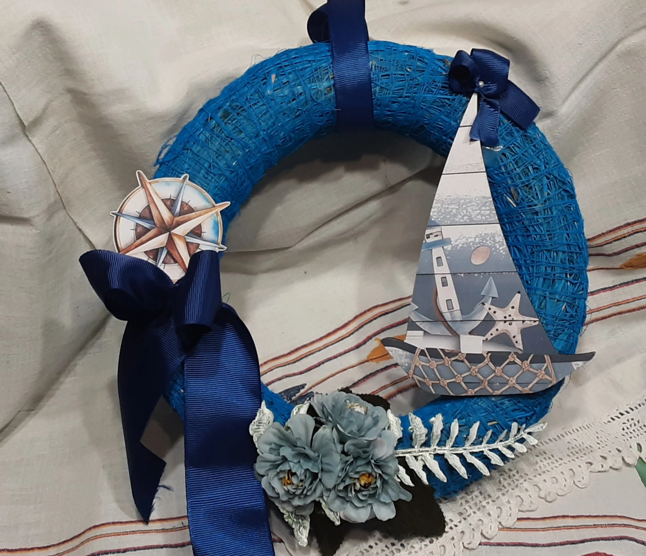 BALATONI VITORLÁSOK - KÉKSZALAGOS DEKOR KOSZORÚ 25 CM
