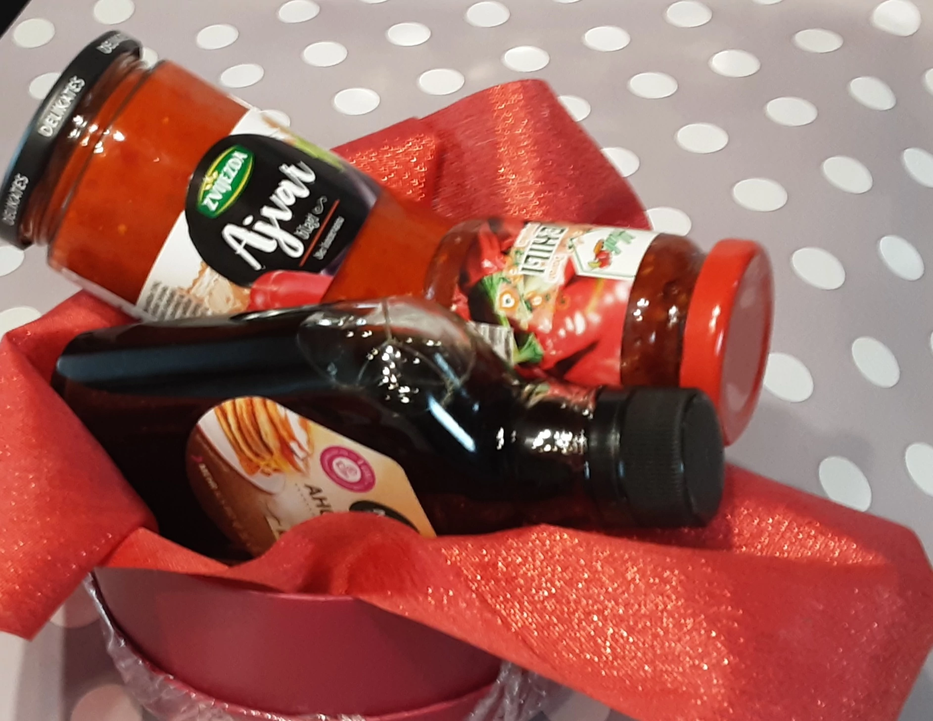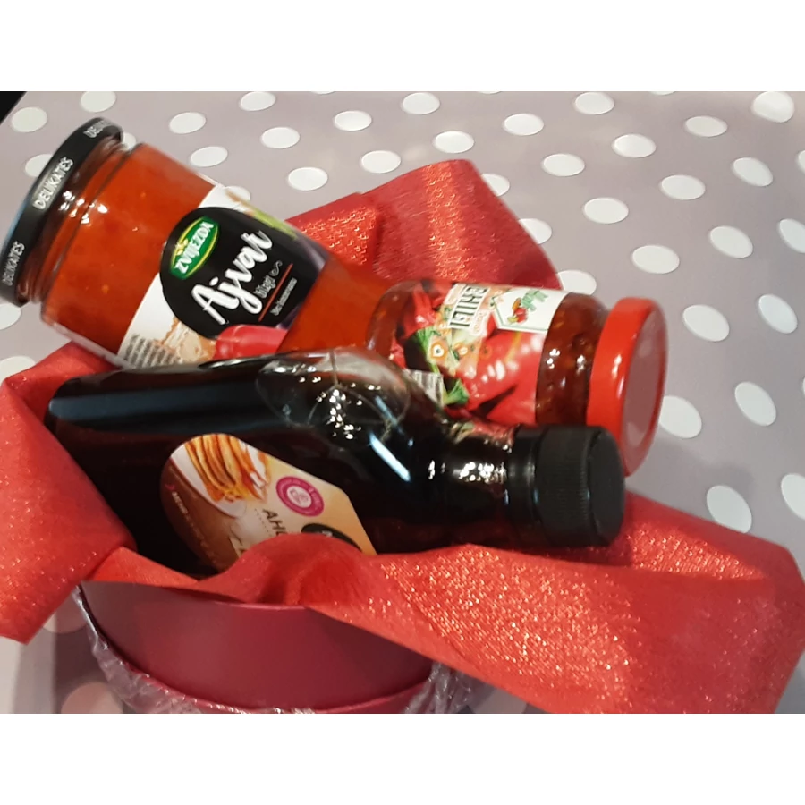 A csomag tartalma: 1 ü Bio Juharszirup 0,2 l, 1 ü Zajezda Ajvár 350 g, 1 ü Chili 100 g, 1 szál selyemrózsa .