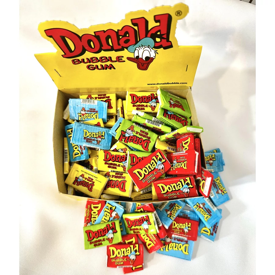 A Donald Rágógumi egy klaszikus , tutti-frutti ízű rágógumi. Minden rágót kedvelőnek különősen kellemes élmény, könnyed, bársonyos textúrája, gyümölcsös íze, illata, amit használatakor tapasztalunk. Allergén infó, szóját tartalmaz!