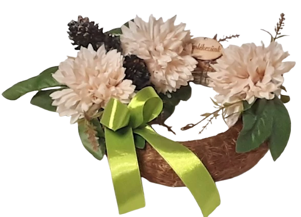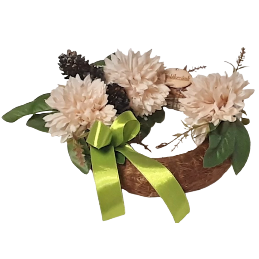 Selyemvirággal díszített, természetes szalma alapra készűlt termék