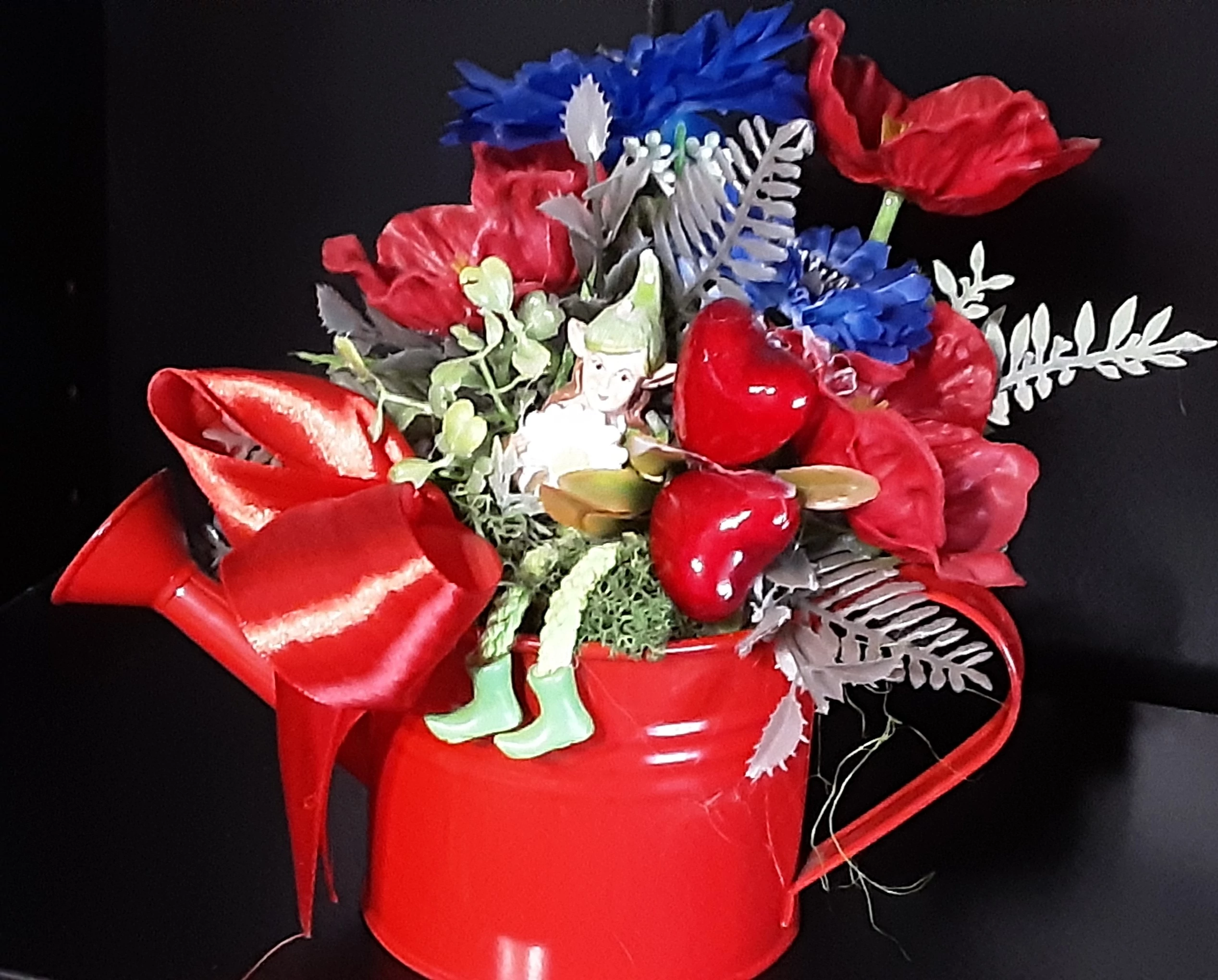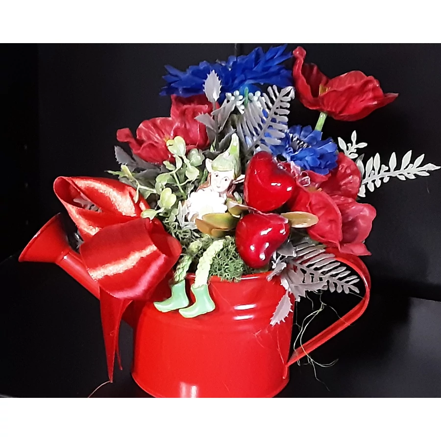 Kedves ajándék lehet születésnapra, valentinra, nőnapra, anyáknapjára ez a kis bádogkanna virágokkal.
