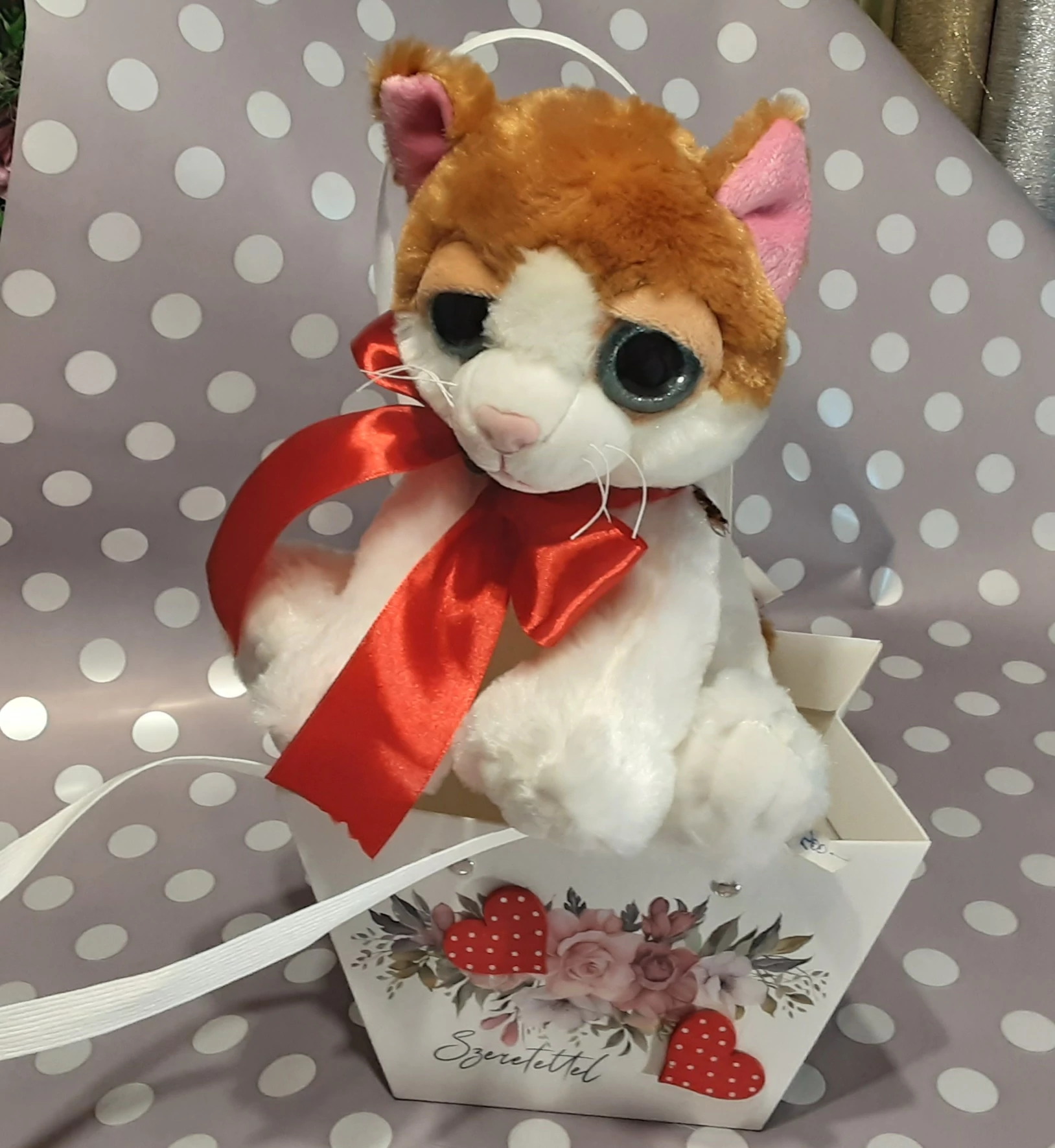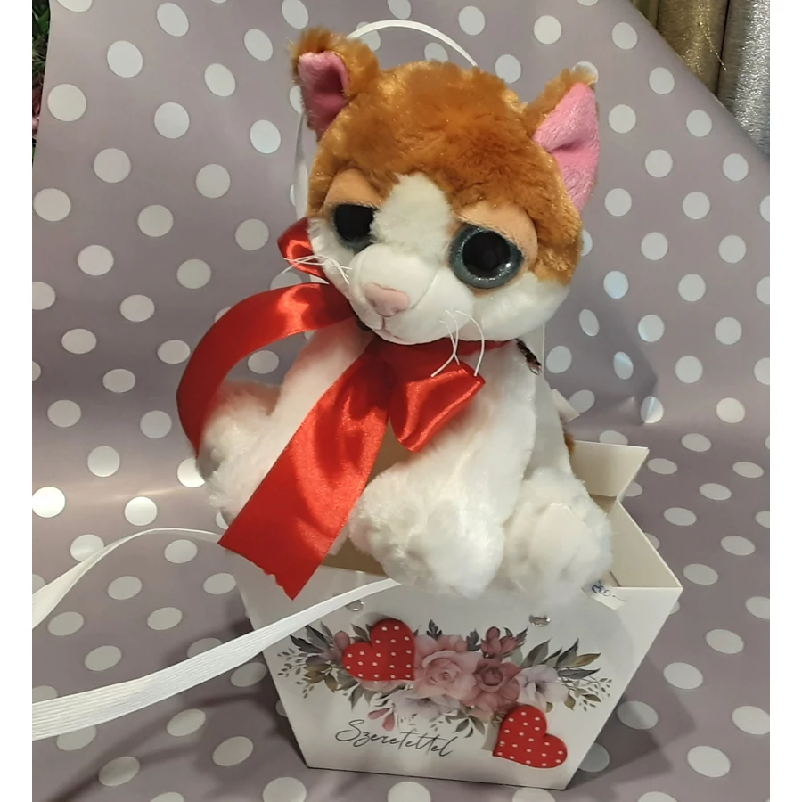Piros szalagos pihe - puha macsek, szerethető ,kedves figura. Ajándékozásra valentivra, nőnapra kiváló választás.