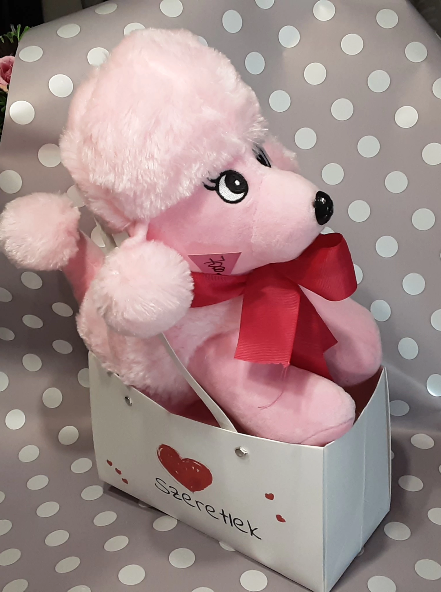 Uszkár kutyus , kíváló minőségű pihe-puha plüss figura. Gyerekek kedvence lehet, születésnapra és ünnepi alkalomra, ajándékozásra.